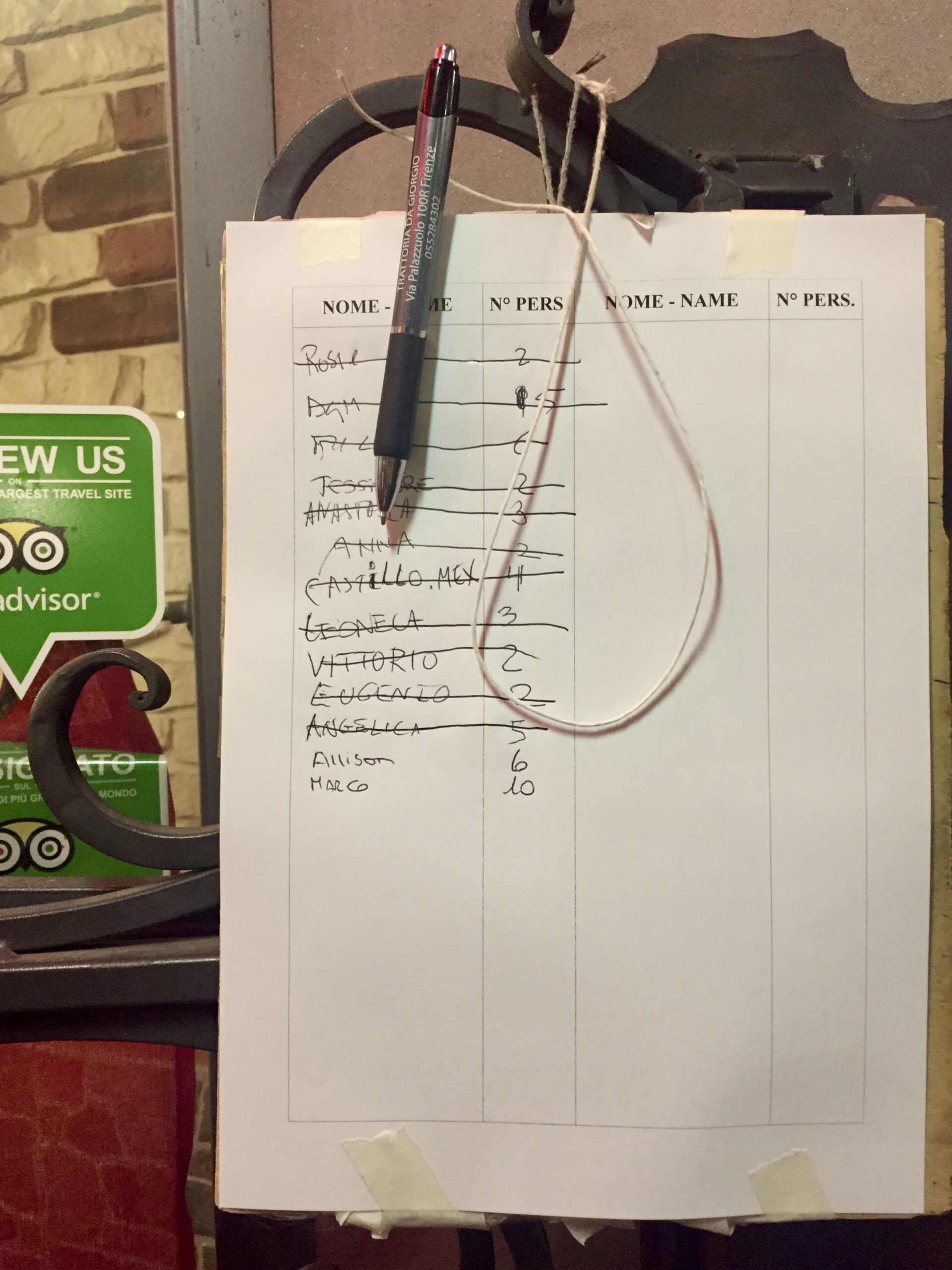 Photo: A reservation list for a restaurant in Florence… 2018.